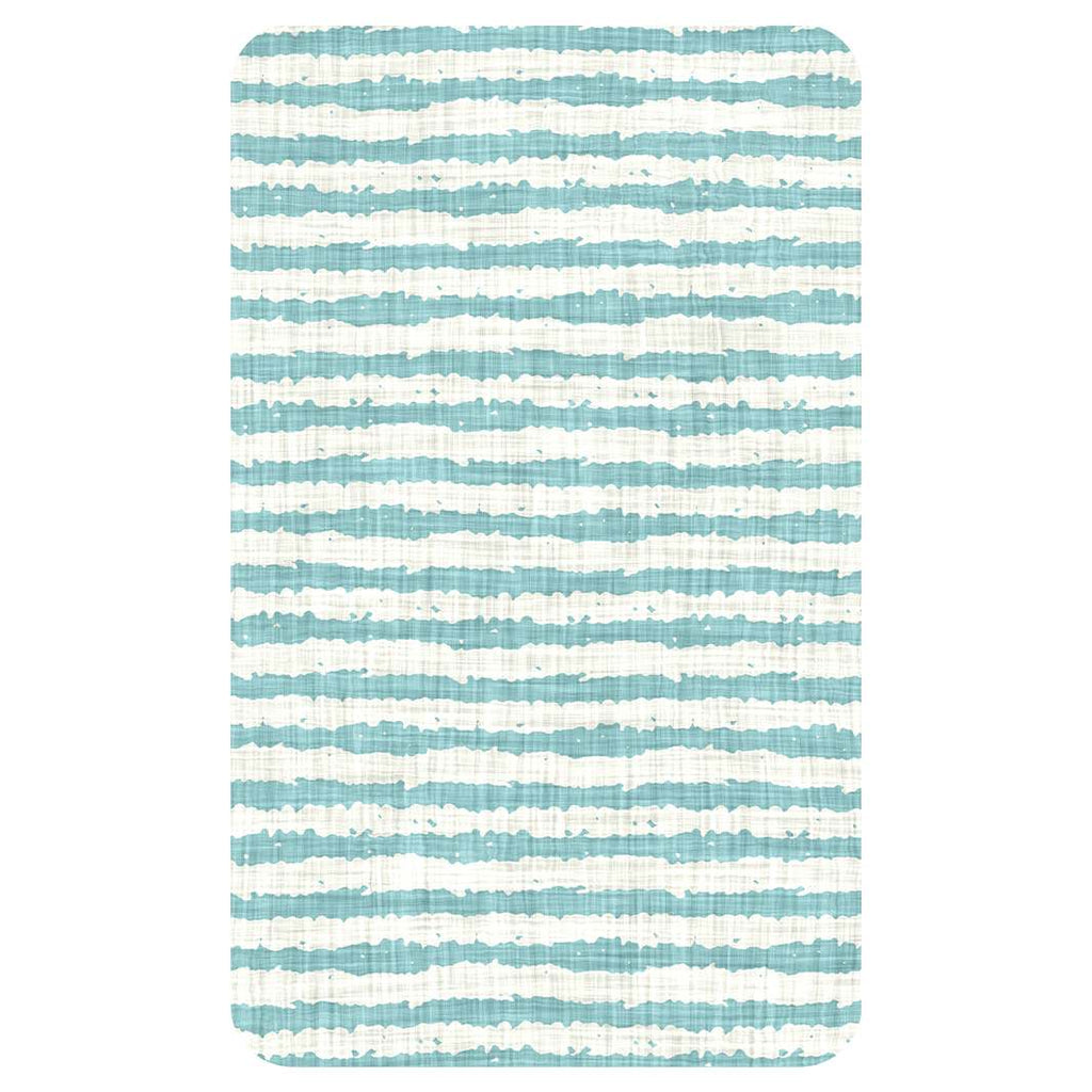 AQUA STRIPES ON WHITE KITCHEN TOWEL