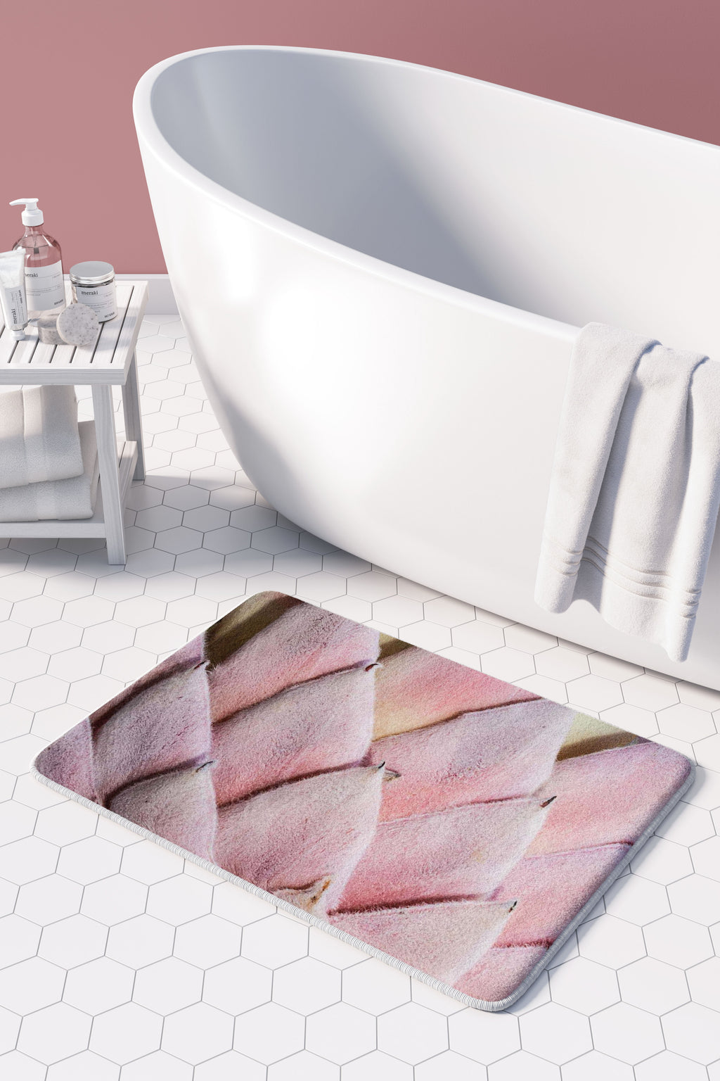 FLORAL DEEP PINK KING PROTEA LEAVES BATHMAT
