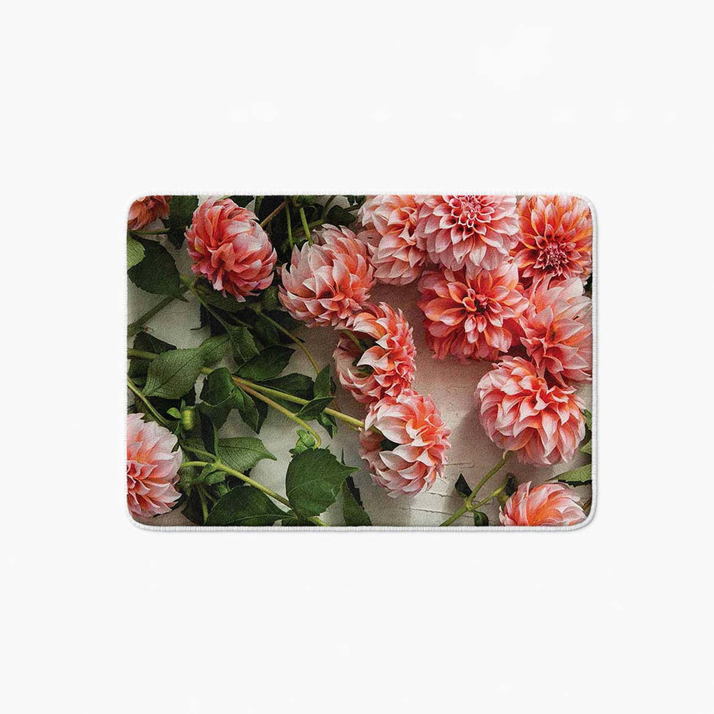 FLORAL ORANGE SCATTERED DAHLIAS WITH LEAVES BATHMAT