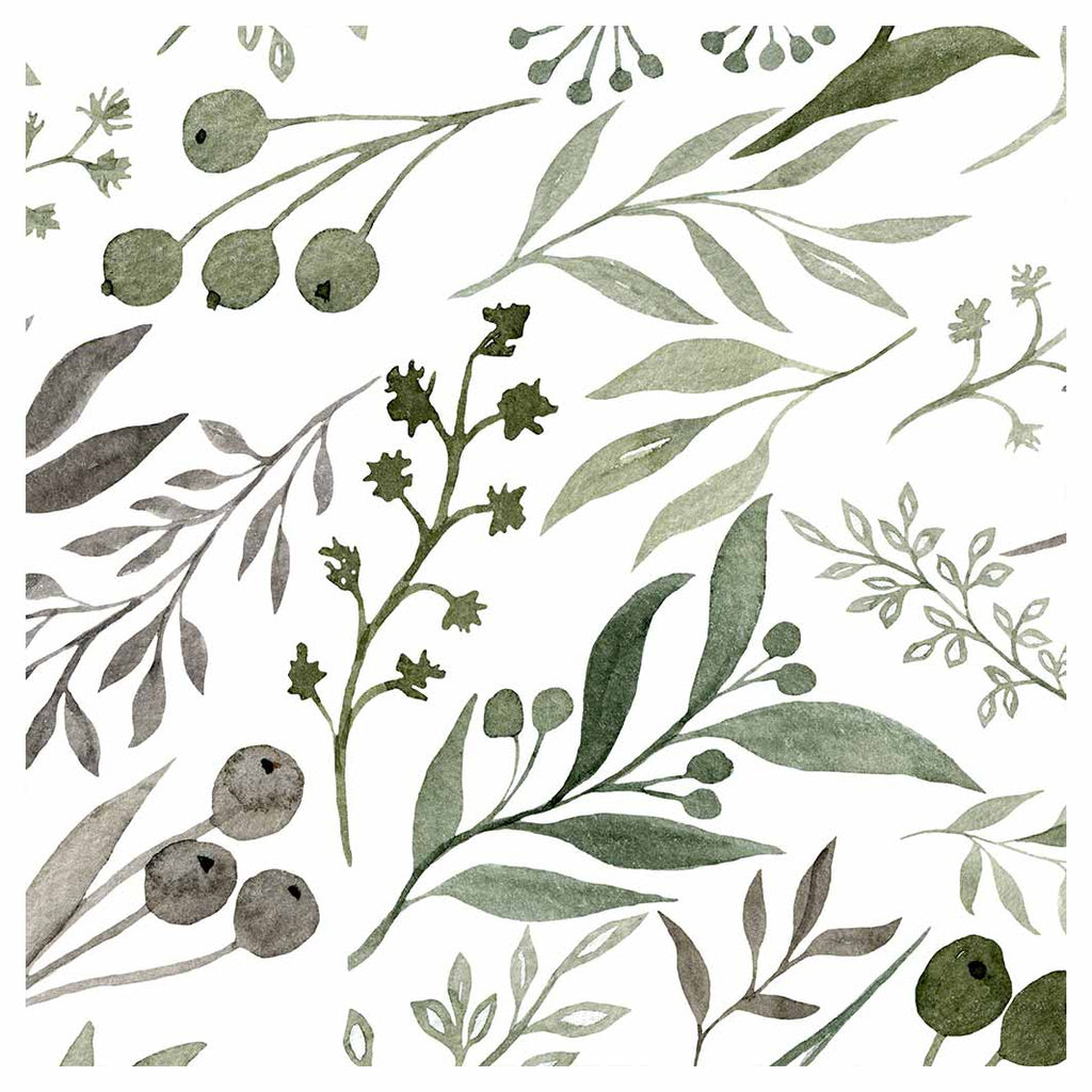 WATERCOLOUR GREEN LEAVES SQUARE COFFEE TABLE
